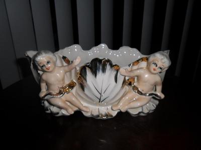 Cherub angel vtg. gold trim trinket Dish or Planter!
