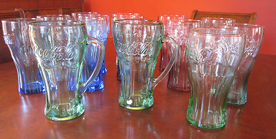 Title (ebay affiliate link): Set of 14 vintage Coca-Cola glasses Multi-colored tulip contour