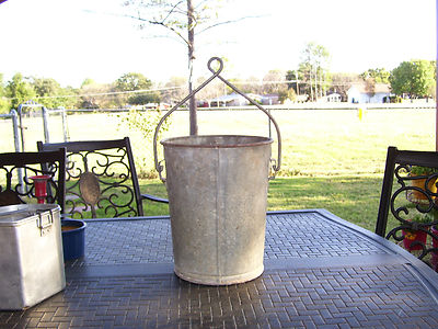 ANTIQUE WATER WELL PRIMITIVE DRAW BUCKET PAIL METAL/STEEL - STILL HOLDS WATER