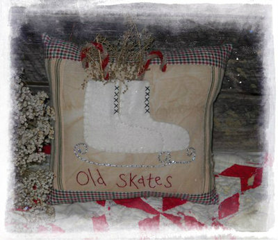 Primitive Christmas Penny Rug Old Ice Skates Stitchery Pillow ~ Sweet Annie