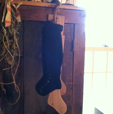Title (ebay affiliate link): 19th To E 20th C Childs Pine Sock Stretchers Matching Pair With Black Knit Socks