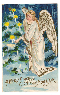 Postcard Christmas Tree and New Years Angel 1908