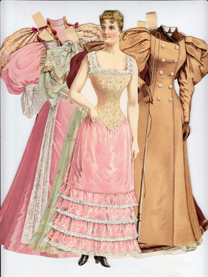 Title (ebay affiliate link): BOSTON HERALD Paper Doll & 6 Costumes 1895 Cut Fan Coat Parasol Muff Buggy Whip