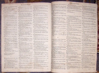 Title (ebay affiliate link): 1599 Geneva Quarto Roman Letter Bible Leaves/THE TABLES/DATED/WOODCUT!