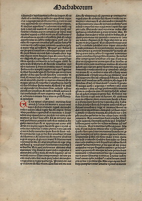 1484 Incunabula Medieval Bible Vellum Leaf 1 MACCABEES + Hand Painted Initial