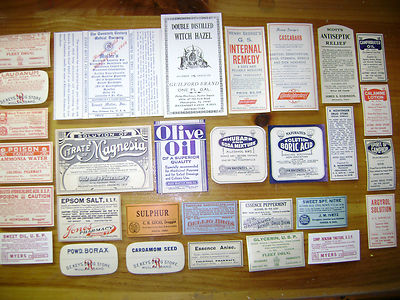 Title (ebay affiliate link): 30+OLD PHARMACY-APOTHECARY-MEDICINE BOTTLE LABELS==DIFF