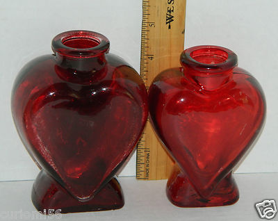 Title (ebay affiliate link): 2 Vintage Ruby Red Satin Glass Heart Shaped Apothecary Jars Bottles