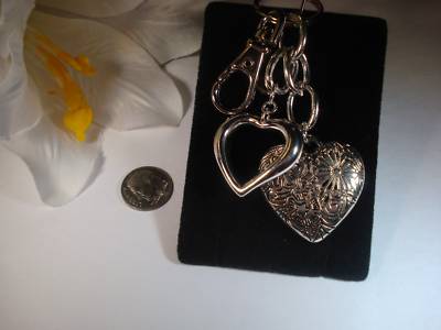 BRIGHT BAY antique silver 2 HEART charm keyring