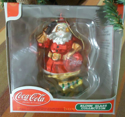 Title (ebay affiliate link): Large Santa Blown Glass Coca Cola Christmas Ornament A Gift for the Thirsty