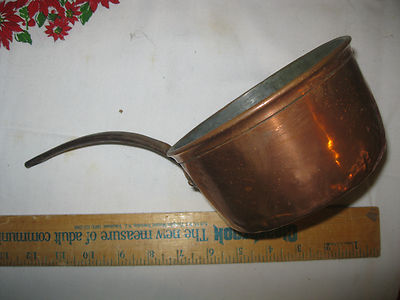 Antique Copper Sauce Pan,Circa 1700s,Cast iron handle,very old rare,13in long 4