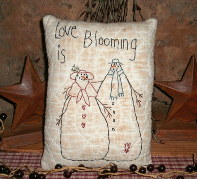 Primitive Stitchery Sampler Pillow ~ LOVE IS BLOOMING SNOWMEN~