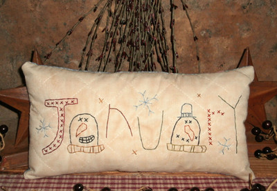 Primitive Stitchery Sampler Pillow ~JANUARY SNOWMEN~