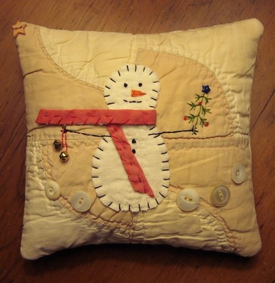 Title (ebay affiliate link): Primitive Small Folk Art Snowman Christmas Tree Pillow From Vintage Quilt Piece