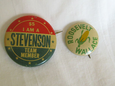Title (ebay affiliate link): U.S. President campaign buttons Stevenson 1950's, Roosevelt, Wallace 1940