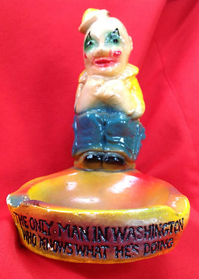 Vintage Chalkware Political Clown sitting on the Toilet Ashtray Washington, DC .