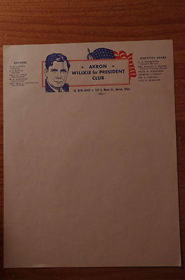 Title (ebay affiliate link): Akron, OH Wendell Willkie Club Letterhead - 1940 election FDR