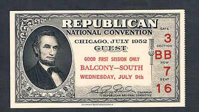 Title (ebay affiliate link): 1952 Republican National Convention Guest Ticket Chicago Abe Lincoln