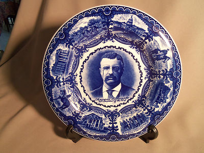 Title (ebay affiliate link): ANTIQUE STAFFORDSHIRE 10" BLUE & WHITE THEODORE ROOSEVELT PLATE