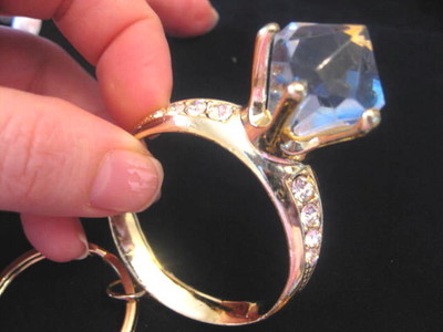 Title (ebay affiliate link): VINTAGE AJC SIGNED LARGE GOLDEN 'DIAMOND' AND RHINESTONES RING THEME KEYCHAIN.