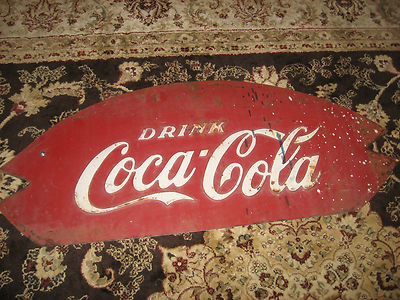 Title (ebay affiliate link): *RARE* Metal ONE OF A KIND 50s Coca Cola Coke Fishtail Sign Antique Vintage