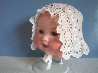 BEAUTIFUL ANTIQUE EMBROIDERED WHITE BONNET FOR DOLL
