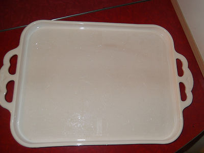 Title (ebay affiliate link): 50s JEANETTE SHELL PINK Milk Glass 2 HANDLE TRAY - HARP PATTERN