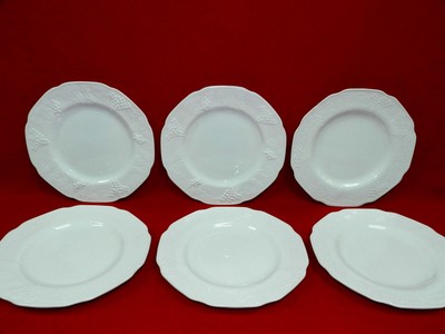 6 INDIANA MILK GLASS GRAPE LEAF DINNER PLATES