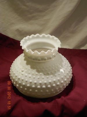Title (ebay affiliate link): Hobnail Milk Glass Ruffled Lamp Shade 7" opening on bottom