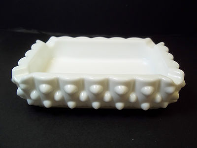 Small FENTON hobnail milk glass ashtray rectangle unmarked 4x3 inches