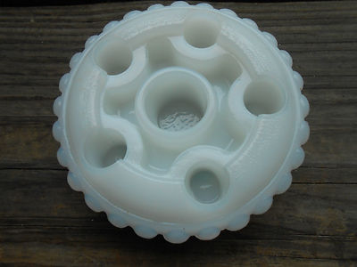 Signed FENTON White Milkglass Candle Holder HOBNAIL