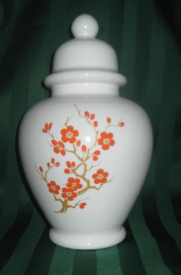 Title (ebay affiliate link): Vintage Orange Dogwood Flowers Ginger Jar Milk Glass Made In Italy Mint!