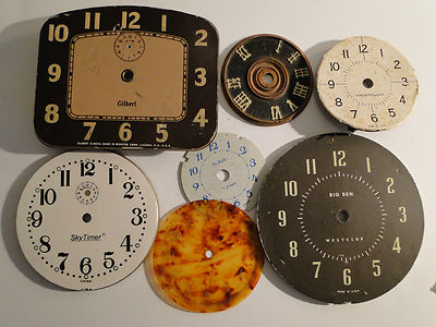 Title (ebay affiliate link): Vintage Antique Clock Faces Dials lot of 7 Gilbert Westclox Big Ben Slava etc