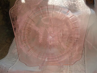Title (ebay affiliate link): Jeannette Glass Co. Pink Adam Square Salad Plate ~ 7 3/4"