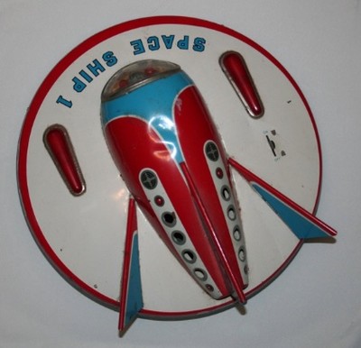 VINTAGE JAPAN MASUDAYA TIN SPACE SHIP BIG SAUCER WHITE