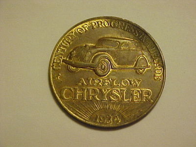 1934 AIRFLOW CHRYSLER CENTURY OF PROGRESS WORLDS FAIR TOKEN MEDAL