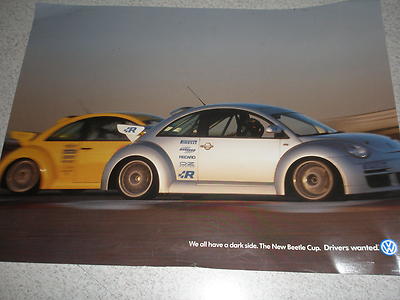 Title (ebay affiliate link): Volkswagen, 2001 manufacturer poster shows racing New Beetle from 2001 auto show