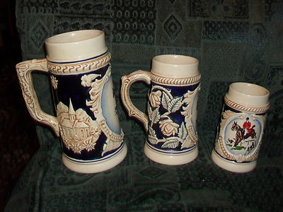 Title (ebay affiliate link): 3,ceramic tankards,fox hunting scene on them.