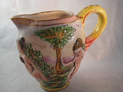 Title (ebay affiliate link): Antique CAPODIMONTE? Italian Majolica Creamer,Style Figural Cherubs Hand Painted