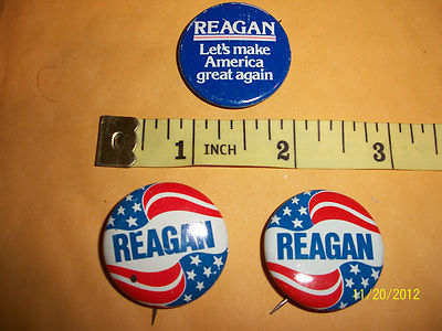 Title (ebay affiliate link): Lot of three Vintage Original RONALD REAGAN campaign buttons 1980's