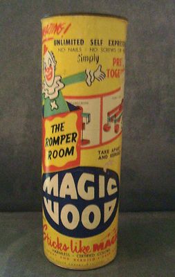 Title (ebay affiliate link): VINTAGE ROMPER ROOM MAGIC WOOD BUILDING BLOCK CANISTER ONLY HASBRO GEM c.1955
