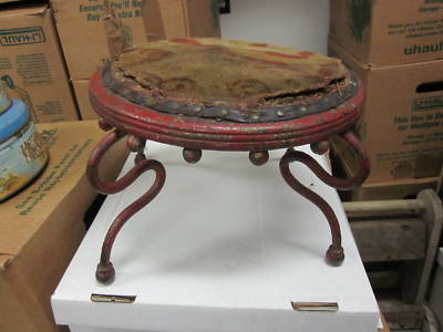 Title (ebay affiliate link): Antique Wood and Iron Rod legged Stool w/ Ball Design