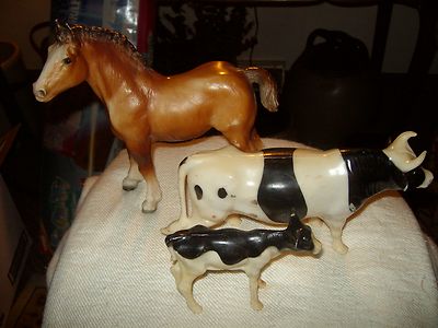 Title (ebay affiliate link): (3) Vintage Antique Plastic Farm Animals Toys! 1 Horse and 2 Cows!