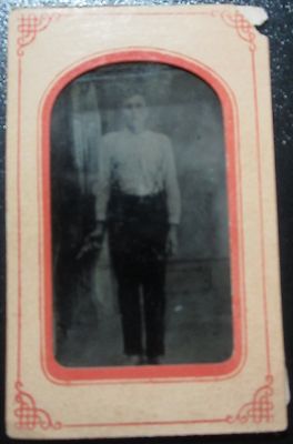 Title (ebay affiliate link): 1870s Tintype Young Man Boy Holding Pistol Gun Virginia