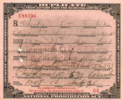 Old 1929 PROHIBITION WHISKEY Patrick PRESCRIPTION CA Pharmacy History Home Bar