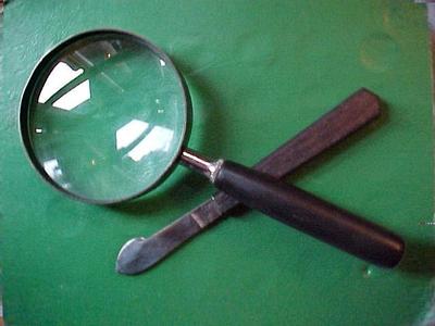 MAGNIFYING GLASS Vintage ATCO & UTICA Cutlery USA Fleam or Ink Knife & Hand Lens