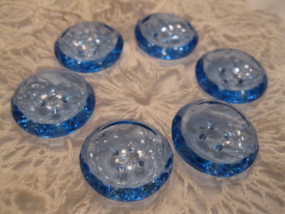 6 Depression/Transparent Blue Glass Buttons