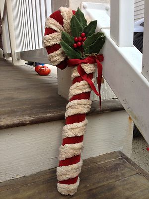 Title (ebay affiliate link): Primitive vintage "look" chenille candy cane holiday decor, door hanger, ornie