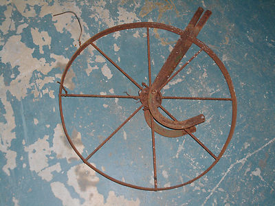 vintage ANTIQUE METAL PLOW WHEEL 8 SPOKE steel VERY OLD AND RUSTED looks great