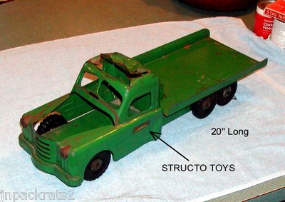 Title (ebay affiliate link): Vintage Antique Toys Tin Vehicles TRUCK STRUCTO 6 Wheels Green Flatbed MUST SEE