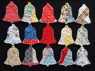 Title (ebay affiliate link): 15 PRIMITIVE ANTIQUE CUTTER QUILT CHRISTMAS BELLS - FOLK ART